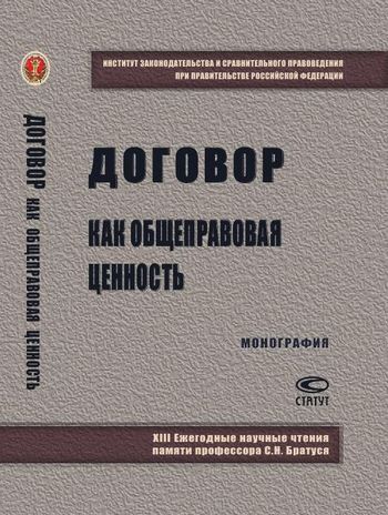 Договор как общеправовая ценность : монография / В. Р. Авхадеев, В. С. Асташова, Л. В. Андриченко [и др.] ; под редакцией В. М. Жуйкова [и др.]. — Москва : Статут, Институт законодательства и сравнительного правоведения при Правительстве Российской Федерации, 2018. — 381 c. — ISBN 978-5-6041528-8-1. — Текст : электронный // Цифровой образовательный ресурс IPR SMART : [сайт]. — URL: https://www.iprbookshop.ru/88252.html (дата обращения: 27.02.2024). — Режим доступа: для авторизир. пользователей