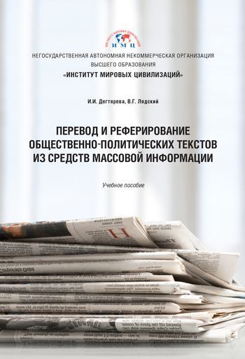 Дегтярева, И. И. Перевод и реферирование общественно-политических текстов из средств массовой информации : учебное пособие / И. И. Дегтярева, В. Г. Лядский. — Москва : Институт мировых цивилизаций, 2018. — 191 c. — ISBN 978-5-6042041-4-6. — Текст : электронный // Цифровой образовательный ресурс IPR SMART : [сайт]. — URL: https://www.iprbookshop.ru/88532.html (дата обращения: 24.04.2024). — Режим доступа: для авторизир. пользователей