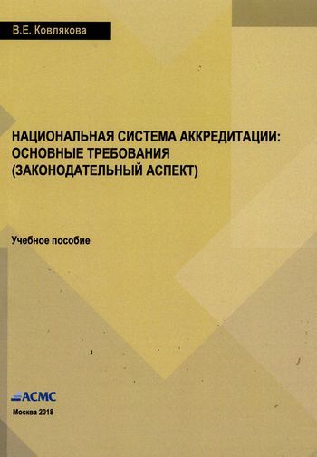 Ковлякова, В. Е. Национальная система аккредитации: основные требования (законодательный аспект) : учебное пособие / В. Е. Ковлякова. — Москва : Академия стандартизации, метрологии и сертификации, 2018. — 184 c. — ISBN 978-8-93088-197-4. — Текст : электронный // Цифровой образовательный ресурс IPR SMART : [сайт]. — URL: https://www.iprbookshop.ru/88717.html (дата обращения: 23.10.2024). — Режим доступа: для авторизир. пользователей
