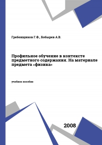 Гребенщиков Г.Ф. Профильное обучение в контексте предметного содержания. На материале предмета «физика» : учебное пособие / Гребенщиков Г.Ф., Бобырев А.В.. — Таганрог : Таганрогский государственный педагогический институт, Центр научной мысли, 2008. — 144 c. — Текст : электронный // Цифровой образовательный ресурс IPR SMART : [сайт]. — URL: https://www.iprbookshop.ru/8996.html (дата обращения: 06.12.2025). — Режим доступа: для авторизир. пользователей