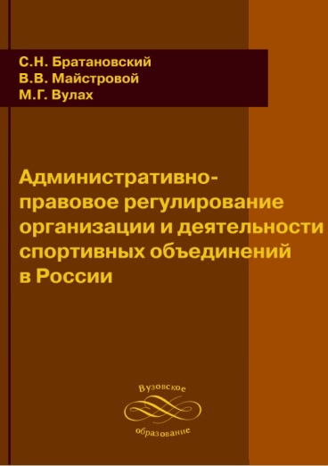 Братановский, С. Н. Административно-правовое регулирование организации и деятельности общественных спортивных объединений в России : монография / С. Н. Братановский, В. В. Майстровой, М. Г. Вулах. — Саратов : Электронно-библиотечная система IPRbooks, 2012. — 222 c. — Текст : электронный // Цифровой образовательный ресурс IPR SMART : [сайт]. — URL: https://www.iprbookshop.ru/9002.html (дата обращения: 14.07.2025). — Режим доступа: для авторизир. пользователей