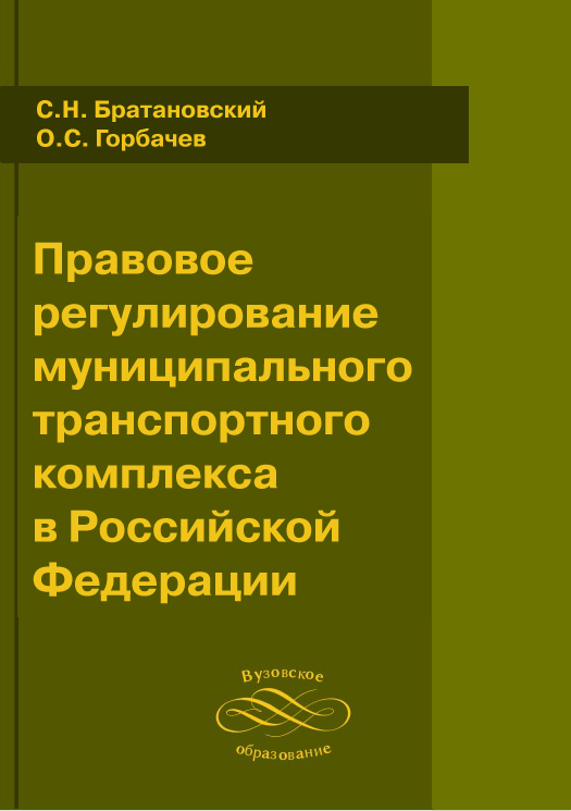 Братановский, С. Н. Правовое регулирование муниципального транспортного комплекса в Российской Федерации : монография / С. Н. Братановский, О. С. Горбачев. — Саратов : Электронно-библиотечная система IPRbooks, 2012. — 170 c. — Текст : электронный // Цифровой образовательный ресурс IPR SMART : [сайт]. — URL: https://www.iprbookshop.ru/9013.html (дата обращения: 06.02.2025). — Режим доступа: для авторизир. пользователей