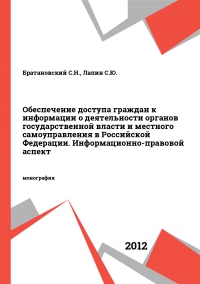Братановский, С. Н. Обеспечение доступа граждан к информации о деятельности органов государственной власти и местного самоуправления в Российской Федерации. Информационно-правовой аспект : монография / С. Н. Братановский, С. Ю. Лапин. — Саратов : Электронно-библиотечная система IPRbooks, 2012. — 123 c. — ISBN 978-5-9758-1126-1. — Текст : электронный // Цифровой образовательный ресурс IPR SMART : [сайт]. — URL: https://www.iprbookshop.ru/9015.html (дата обращения: 19.08.2025). — Режим доступа: для авторизир. пользователей