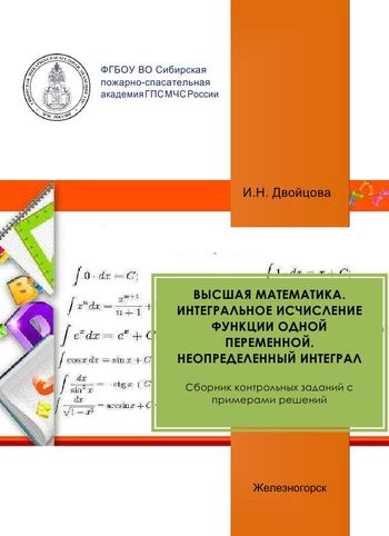 Двойцова И.Н. Высшая математика. Интегральное исчисление функции одной переменной. Неопределенный интеграл. Сборник контрольных заданий с примерами решений : учебное пособие / Двойцова И.Н.. — Железногорск : Сибирская пожарно-спасательная академия ГПС МЧС России, 2018. — 53 c. — Текст : электронный // Цифровой образовательный ресурс IPR SMART : [сайт]. — URL: https://www.iprbookshop.ru/90180.html (дата обращения: 05.12.2025). — Режим доступа: для авторизир. пользователей