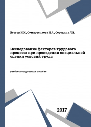 Бузуев, И. И. Исследование факторов трудового процесса при проведении специальной оценки условий труда : учебно-методическое пособие / И. И. Бузуев, И. А. Сумарченкова, Л. В. Сорокина. — 2-е изд. — Самара : Самарский государственный технический университет, ЭБС АСВ, 2017. — 101 c. — Текст : электронный // Цифровой образовательный ресурс IPR SMART : [сайт]. — URL: https://www.iprbookshop.ru/90509.html (дата обращения: 16.01.2025). — Режим доступа: для авторизир. пользователей