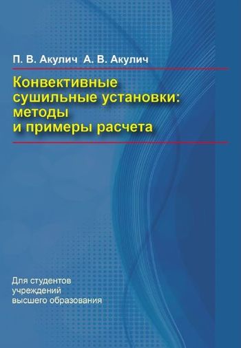 Акулич, П. В. Конвективные сушильные установки. Методы и примеры расчета : учебное пособие / П. В. Акулич, А. В. Акулич. — Минск : Вышэйшая школа, 2019. — 376 c. — ISBN 978-985-06-2984-5. — Текст : электронный // Цифровой образовательный ресурс IPR SMART : [сайт]. — URL: https://www.iprbookshop.ru/90776.html (дата обращения: 16.02.2024). — Режим доступа: для авторизир. пользователей