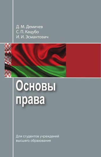 Демичев, Д. М. Основы права : учебное пособие / Д. М. Демичев, С. П. Кацубо, И. И. Эсмантович. — Минск : Вышэйшая школа, 2018. — 360 c. — ISBN 978-985-06-2983-8. — Текст : электронный // Цифровой образовательный ресурс IPR SMART : [сайт]. — URL: https://www.iprbookshop.ru/90803.html (дата обращения: 22.05.2024). — Режим доступа: для авторизир. пользователей