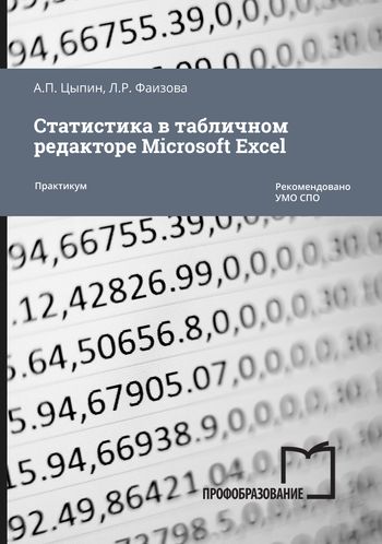 Цыпин, А. П. Статистика в табличном редакторе Microsoft Excel : практикум для СПО / А. П. Цыпин, Л. Р. Фаизова. — Саратов : Профобразование, 2020. — 288 c. — ISBN 978-5-4488-0623-0. — Текст : электронный // Цифровой образовательный ресурс IPR SMART : [сайт]. — URL: https://www.iprbookshop.ru/92170.html (дата обращения: 03.06.2024). — Режим доступа: для авторизир. пользователей