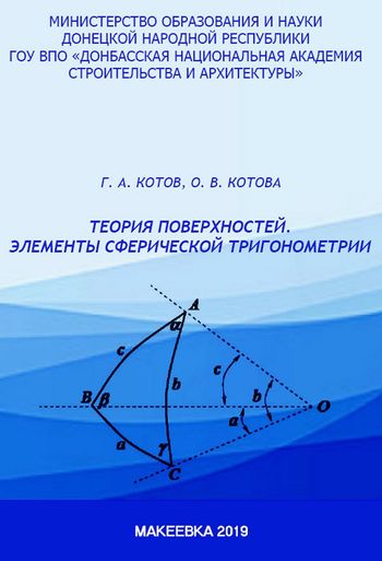 Котов, Г. А. Теория поверхностей. Элементы сферической тригонометрии : учебное пособие / Г. А. Котов, О. В. Котова. — Макеевка : Донбасская национальная академия строительства и архитектуры, ЭБС АСВ, 2019. — 151 c. — Текст : электронный // Цифровой образовательный ресурс IPR SMART : [сайт]. — URL: https://www.iprbookshop.ru/92354.html (дата обращения: 20.03.2024). — Режим доступа: для авторизир. пользователей