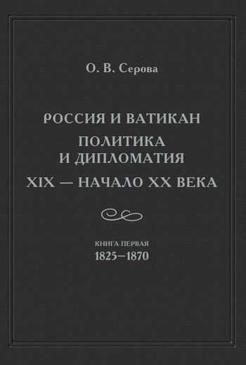 Серова, О. В. Россия и Ватикан. Политика и дипломатия. XIX – начало XX века. Кн.1. 1825–1870 / О. В. Серова. — 2-е изд. — Москва : Издательский Дом ЯСК, 2019. — 984 c. — ISBN 978-5-907117-28-0 (кн.1), 978-5-6041006-8-4. — Текст : электронный // Цифровой образовательный ресурс IPR SMART : [сайт]. — URL: https://www.iprbookshop.ru/92409.html (дата обращения: 31.01.2024). — Режим доступа: для авторизир. пользователей