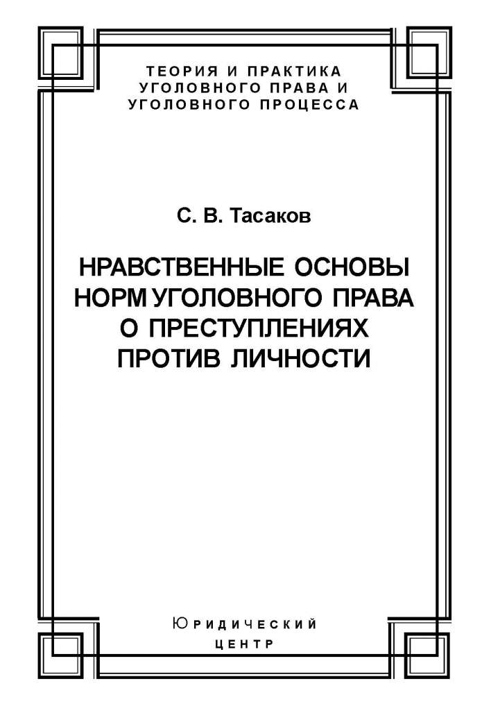 Тасаков С.В. Нравственные основы норм уголовного права о преступлениях против личности : монография / Тасаков С.В.. — Санкт-Петербург : Юридический центр Пресс, 2008. — 318 c. — ISBN 978-5-94201-563-3. — Текст : электронный // Цифровой образовательный ресурс IPR SMART : [сайт]. — URL: https://www.iprbookshop.ru/9266.html (дата обращения: 06.12.2025). — Режим доступа: для авторизир. пользователей