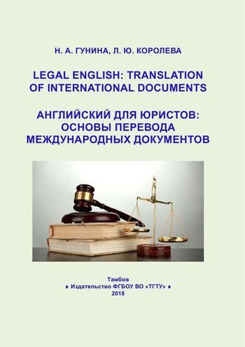 Гунина, Н. А. Английский для юристов: основы перевода международных документов : учебное пособие / Н. А. Гунина, Л. Ю. Королева. — Тамбов : Тамбовский государственный технический университет, ЭБС АСВ, 2018. — 80 c. — ISBN 978-5-8265-1852-6. — Текст : электронный // Цифровой образовательный ресурс IPR SMART : [сайт]. — URL: https://www.iprbookshop.ru/92661.html (дата обращения: 25.04.2024). — Режим доступа: для авторизир. пользователей