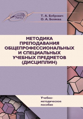 Бобрович Т.А. Методика преподавания общепрофессиональных и специальных учебных предметов (дисциплин) : учебно-методическое пособие / Бобрович Т.А., Беляева О.А.. — Минск : Республиканский институт профессионального образования (РИПО), 2018. — 198 c. — ISBN 978-985-503-772-0. — Текст : электронный // Цифровой образовательный ресурс IPR SMART : [сайт]. — URL: https://www.iprbookshop.ru/93386.html (дата обращения: 21.12.2025). — Режим доступа: для авторизир. пользователей
