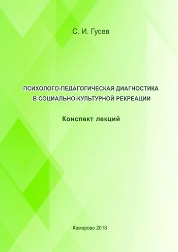Конспект лекций по дисциплине «Психолого-педагогическая диагностика в социально-культурной рекреации» состоит из двух разделов. Первый раздел «Теоретические и методологические основы психолого-педагогической диагностики» включает в себя: историю, вопросы возникновения и развития психолого-педагогической диагностики; психологические и педагогические принципы диагностики; основные понятия и классификацию методов диагностики. Второй раздел «Методики и технологии психолого-педагогической диагностики» включает в себя: рассмотрение методик и технологий психолого-педагогической диагностики, основные направления и конкретные методики, применяемые в практической деятельности. Сделан акцент на описании базовых теоретико-методологических понятий психолого-педагогической диагностики и рассмотрении практического применения методик. В дополнение к вышеизложенному рассматриваются условия проведения диагностики, связанные с социально-культурной деятельностью и рекреацией.