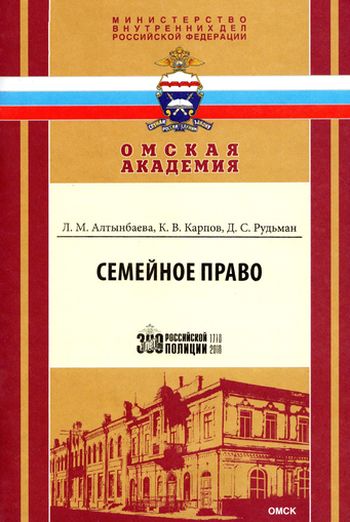 Алтынбаева, Л. М. Семейное право : учебное пособие / Л. М. Алтынбаева, К. В. Карпов, Д. С. Рудьман. — Омск : Омская академия МВД России, 2018. — 120 c. — ISBN 978-5-88651-685-2. — Текст : электронный // Цифровой образовательный ресурс IPR SMART : [сайт]. — URL: https://www.iprbookshop.ru/93845.html (дата обращения: 22.11.2024). — Режим доступа: для авторизир. пользователей