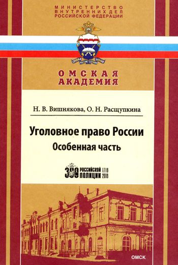 Вишнякова, Н. В. Уголовное право России. Особенная часть : учебное пособие / Н. В. Вишнякова, О. Н. Расщупкина. — Омск : Омская академия МВД России, 2018. — 204 c. — ISBN 978-5-88651-686-9. — Текст : электронный // Цифровой образовательный ресурс IPR SMART : [сайт]. — URL: https://www.iprbookshop.ru/93850..html (дата обращения: 29.11.2024). — Режим доступа: для авторизир. пользователей