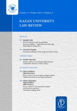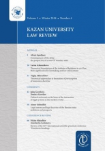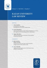 «Kazan University Law Review» — научно-практический журнал, издаваемый с 2016 года, выходит 4 раза в год на английском языке. Цель журнала — создание профессиональной площадки для обсуждения комплексной проблематики юридической науки и практики. Задачи журнала: 1. Освещать новые результаты перспективных и актуальных научных исследований, имеющие существенное значение в развитии как юридической науки, так и практики; 2. Обеспечивать международные и межрегиональные научно-координирующие функции в грамотном, качественном и своевременном освещении основных результатов научных работ авторов журнала; 3. Развивать доктрину юриспруденции; 4. Формировать рекомендации для судебной и иной юридической практики; 5. Создавать среду открытости и доступности широкого освещения результатов научных работ аспирантов, претендующих на защиту диссертаций и получение ученых степеней; 6. Формировать постоянный устойчивый интерес у научной и научно-педагогической общественности, представителей судейского и адвокатского сообщества, а также у молодых и начинающих ученых к журналу, его растущую востребованность в профессиональных кругах юридического сообщества различных регионов России, ближнего и дальнего зарубежья.