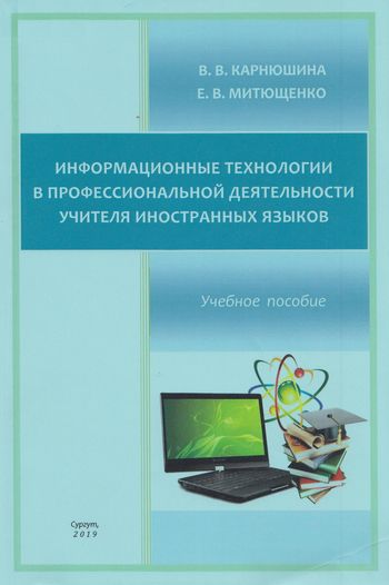 Карнюшина, В. В. Информационные технологии в профессиональной деятельности учителя иностранных языков : учебное пособие / В. В. Карнюшина, Е. В. Митющенко. — Сургут : Сургутский государственный педагогический университет, 2019. — 187 c. — Текст : электронный // Цифровой образовательный ресурс IPR SMART : [сайт]. — URL: https://www.iprbookshop.ru/94283.html (дата обращения: 19.02.2024). — Режим доступа: для авторизир. пользователей