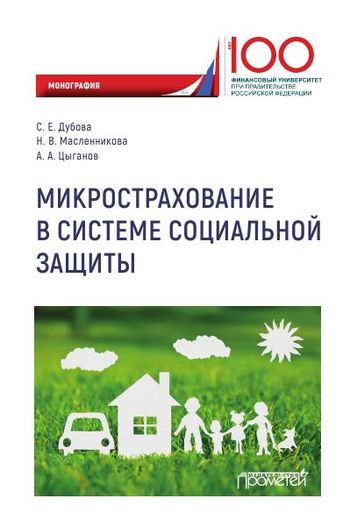 Дубова, С. Е. Микрострахование в системе социальной защиты : монография / С. Е. Дубова, Н. В. Масленникова, А. А. Цыганов ; под редакцией А. А. Цыганова. — Москва : Прометей, 2019. — 176 c. — ISBN 978-5-907100-16-9. — Текст : электронный // Цифровой образовательный ресурс IPR SMART : [сайт]. — URL: https://www.iprbookshop.ru/94460.html (дата обращения: 29.02.2024). — Режим доступа: для авторизир. пользователей