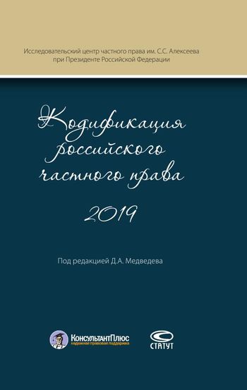Кодификация российского частного права 2019 / В. В. Витрянский, С. Ю. Головина, Б. М. Гонгало [и др.] ; под редакцией Д. А. Медведева. — Москва : Статут, 2019. — 492 c. — ISBN 978-5-8354-1547-2. — Текст : электронный // Цифровой образовательный ресурс IPR SMART : [сайт]. — URL: https://www.iprbookshop.ru/94609.html (дата обращения: 27.06.2024). — Режим доступа: для авторизир. пользователей