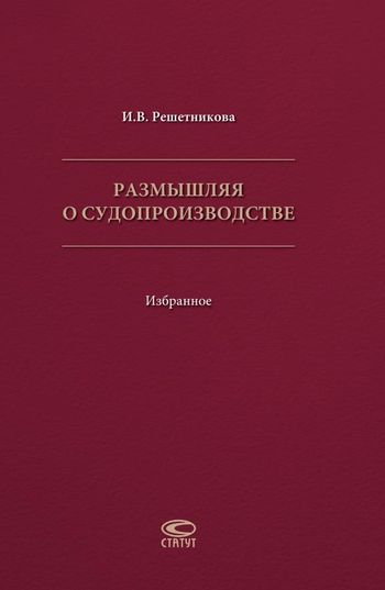 Решетникова, И. В. Размышляя о судопроизводстве: избранное / И. В. Решетникова. — Москва : Статут, 2019. — 510 c. — ISBN 978-5-8354-1524-3. — Текст : электронный // Цифровой образовательный ресурс IPR SMART : [сайт]. — URL: https://www.iprbookshop.ru/94622.html (дата обращения: 21.02.2024). — Режим доступа: для авторизир. пользователей