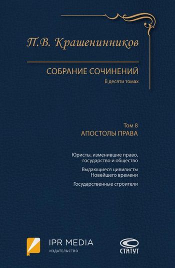 Крашенинников, П. В. Собрание сочинений. В 10 томах. Т.8. Апостолы права / П. В. Крашенинников. — Москва : Статут, 2019. — 296 c. — ISBN 978-5-8354-1561-8 (т.8), 978-5-8354-1488-8. — Текст : электронный // Цифровой образовательный ресурс IPR SMART : [сайт]. — URL: https://www.iprbookshop.ru/94626.html (дата обращения: 02.08.2024). — Режим доступа: для авторизир. пользователей