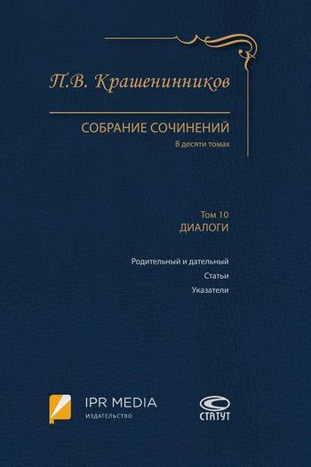 Крашенинников, П. В. Собрание сочинений. В 10 томах. Т.10. Диалоги / П. В. Крашенинников. — Москва : Статут, 2019. — 526 c. — ISBN 978-5-8354-1563-2 (т.10), 978-5-8354-1488-8. — Текст : электронный // Цифровой образовательный ресурс IPR SMART : [сайт]. — URL: https://www.iprbookshop.ru/94628.html (дата обращения: 02.08.2024). — Режим доступа: для авторизир. пользователей