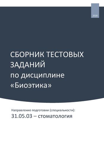 Сборник тестовых заданий по дисциплине «Биоэтика», направление подготовки (специальности): 31.05.03 - стоматология. Учебно-методическое пособие