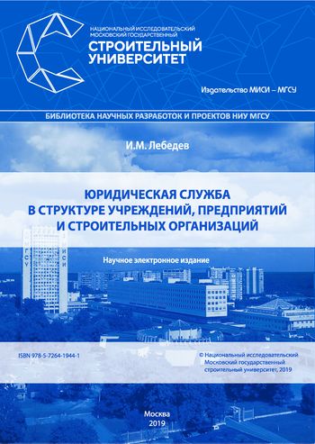 Лебедев И.М. Юридическая служба в структуре учреждений, предприятий и строительных организаций : монография / Лебедев И.М.. — Москва : МИСИ-МГСУ, ЭБС АСВ, 2019. — 79 c. — ISBN 978-5-7264-1944-1. — Текст : электронный // Цифровой образовательный ресурс IPR SMART : [сайт]. — URL: https://www.iprbookshop.ru/95542.html (дата обращения: 15.12.2025). — Режим доступа: для авторизир. пользователей