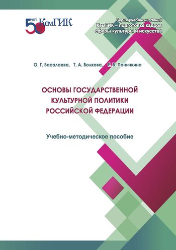 Басалаева, О. Г. Основы государственной культурной политики Российской Федерации : учебно-методическое пособие для студентов, обучающихся по всем направлениям подготовки бакалавриата и специалитета / О. Г. Басалаева, Т. А. Волкова, Е. В. Паничкина. — Кемерово : Кемеровский государственный институт культуры, 2019. — 170 c. — ISBN 978-5-8154-0465-6. — Текст : электронный // Цифровой образовательный ресурс IPR SMART : [сайт]. — URL: https://www.iprbookshop.ru/95565.html (дата обращения: 12.07.2024). — Режим доступа: для авторизир. пользователей
