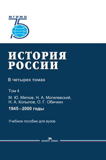 История России. В четырех томах. Т.4: 1945–2000 годы : учебное пособие для вузов / М. Ю. Мягков, Н. А. Могилевский, Н. А. Копылов, О. Г. Обичкин ; под редакцией В. И. Уколовой. — Москва : Аспект Пресс, 2019. — 252 c. — ISBN 978-5-7567-1051-9, 978-5-7567-1055-7 (т.4). — Текст : электронный // Цифровой образовательный ресурс IPR SMART : [сайт]. — URL: https://www.iprbookshop.ru/96304.html (дата обращения: 03.01.2025). — Режим доступа: для авторизир. пользователей