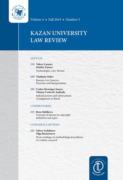 «Kazan University Law Review» — научно-практический журнал, издаваемый с 2016 года, выходит 4 раза в год на английском языке. Цель журнала — создание профессиональной площадки для обсуждения комплексной проблематики юридической науки и практики. Задачи журнала: 1. Освещать новые результаты перспективных и актуальных научных исследований, имеющие существенное значение в развитии как юридической науки, так и практики; 2. Обеспечивать международные и межрегиональные научно-координирующие функции в грамотном, качественном и своевременном освещении основных результатов научных работ авторов журнала; 3. Развивать доктрину юриспруденции; 4. Формировать рекомендации для судебной и иной юридической практики; 5. Создавать среду открытости и доступности широкого освещения результатов научных работ аспирантов, претендующих на защиту диссертаций и получение ученых степеней; 6. Формировать постоянный устойчивый интерес у научной и научно-педагогической общественности, представителей судейского и адвокатского сообщества, а также у молодых и начинающих ученых к журналу, его растущую востребованность в профессиональных кругах юридического сообщества различных регионов России, ближнего и дальнего зарубежья.
