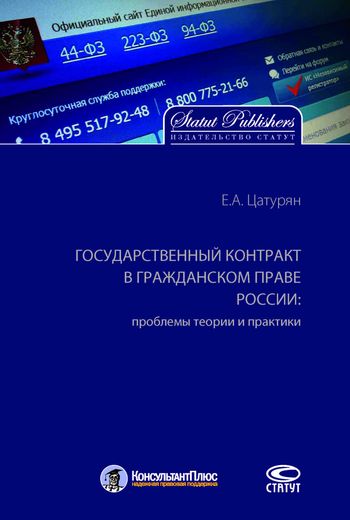 Цатурян, Е. А. Государственный контракт в гражданском праве России: проблемы теории и практики : монография / Е. А. Цатурян. — Москва : Статут, 2020. — 224 c. — ISBN 978-5-8354-1625-7. — Текст : электронный // Цифровой образовательный ресурс IPR SMART : [сайт]. — URL: https://www.iprbookshop.ru/98296.html (дата обращения: 10.09.2024). — Режим доступа: для авторизир. пользователей