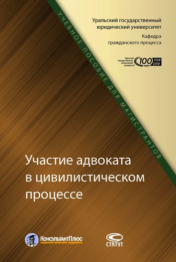 Участие адвоката в цивилистическом процессе : учебное пособие для магистрантов / А.А. Малов [и др.].. — Москва : Статут, 2020. — 173 c. — ISBN 978-5-8354-1598-4. — Текст : электронный // Цифровой образовательный ресурс IPR SMART : [сайт]. — URL: https://www.iprbookshop.ru/98311.html (дата обращения: 05.12.2025). — Режим доступа: для авторизир. пользователей