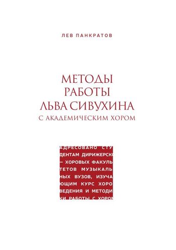 Панкратов Л.Г. Методы работы Льва Сивухина с академическим хором : учебное пособие: по направлению подготовки 53.03.05 «Дирижирование» (уровень бакалавриата профиль «Дирижирование академическим хором») / Панкратов Л.Г.. — Нижний Новгород : Нижегородская государственная консерватория (академия) им. М.И. Глинки, 2020. — 71 c. — ISBN 978-5-6040690-4-2. — Текст : электронный // Цифровой образовательный ресурс IPR SMART : [сайт]. — URL: https://www.iprbookshop.ru/99601.html (дата обращения: 08.12.2025). — Режим доступа: для авторизир. пользователей
