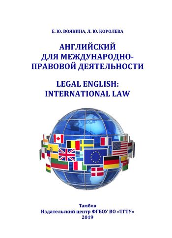 Воякина, Е. Ю. Английский для международно-правовой деятельности : учебное пособие / Е. Ю. Воякина, Л. Ю. Королева. — Тамбов : Тамбовский государственный технический университет, ЭБС АСВ, 2019. — 80 c. — ISBN 978-5-8265-2017-8. — Текст : электронный // Цифровой образовательный ресурс IPR SMART : [сайт]. — URL: https://www.iprbookshop.ru/99750.html (дата обращения: 24.01.2024). — Режим доступа: для авторизир. пользователей