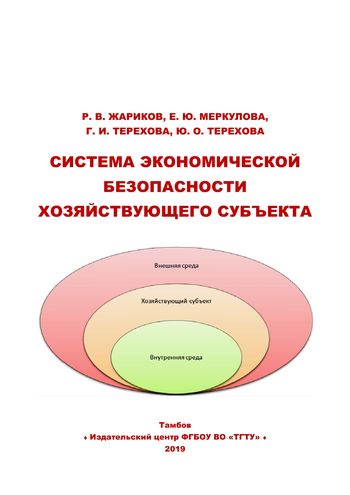 Система экономической безопасности хозяйствующего субъекта : учебное пособие / Р. В. Жариков, Е. Ю. Меркулова, Г. И. Терехова, Ю. О. Терехова. — Тамбов : Тамбовский государственный технический университет, ЭБС АСВ, 2019. — 97 c. — ISBN 978-5-8265-2032-1. — Текст : электронный // Цифровой образовательный ресурс IPR SMART : [сайт]. — URL: https://www.iprbookshop.ru/99789.html (дата обращения: 13.11.2024). — Режим доступа: для авторизир. пользователей