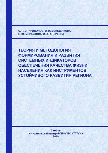 Теория и методология формирования и развития системных индикаторов обеспечения качества жизни населения как инструментов устойчивого развития региона : монография / С. П. Спиридонов, В. И. Меньщикова, Е. Ю. Меркулова, И. А. Андреева. — Тамбов : Тамбовский государственный технический университет, ЭБС АСВ, 2019. — 131 c. — ISBN 978-5-8265-2075-8. — Текст : электронный // Цифровой образовательный ресурс IPR SMART : [сайт]. — URL: https://www.iprbookshop.ru/99794.html (дата обращения: 20.04.2024). — Режим доступа: для авторизир. пользователей