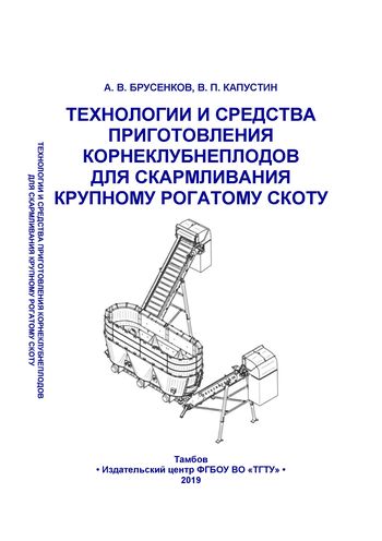 Брусенков, А. В. Технологии и средства приготовления корнеклубнеплодов для скармливания крупному рогатому скоту : монография / А. В. Брусенков, В. П. Капустин. — Тамбов : Тамбовский государственный технический университет, ЭБС АСВ, 2019. — 140 c. — ISBN 978-5-8265-2057-4. — Текст : электронный // Цифровой образовательный ресурс IPR SMART : [сайт]. — URL: https://www.iprbookshop.ru/99797.html (дата обращения: 23.02.2024). — Режим доступа: для авторизир. пользователей