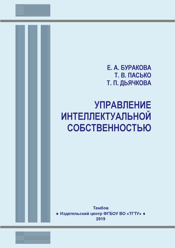Буракова Е.А. Управление интеллектуальной собственностью : учебное пособие / Буракова Е.А., Пасько Т.В., Дьячкова Т.В.. — Тамбов : Тамбовский государственный технический университет, ЭБС АСВ, 2019. — 80 c. — ISBN 978-5-8265-2093-2. — Текст : электронный // Цифровой образовательный ресурс IPR SMART : [сайт]. — URL: https://www.iprbookshop.ru/99800.html (дата обращения: 05.12.2025). — Режим доступа: для авторизир. пользователей